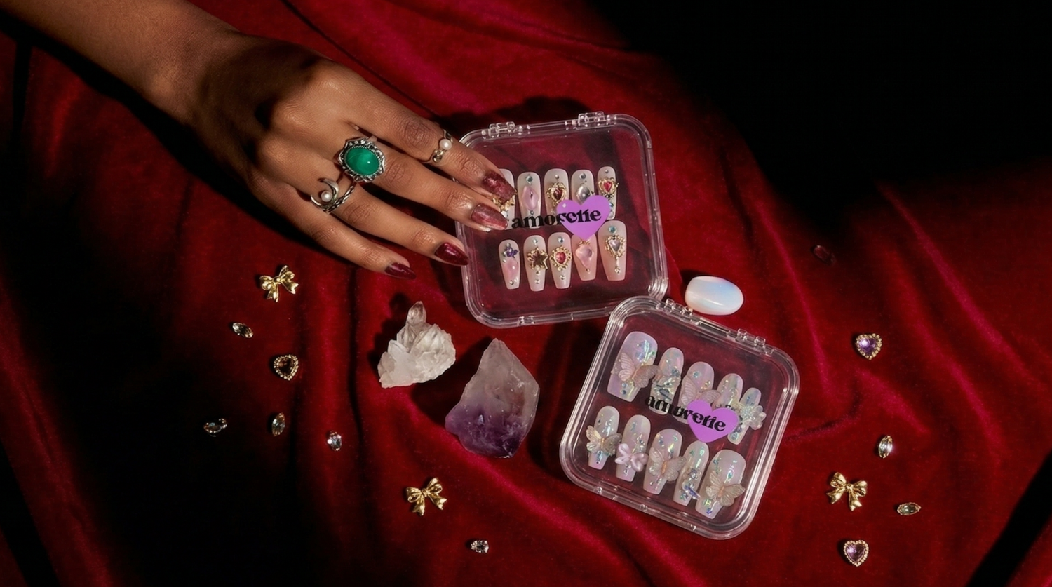 Every Nail Amorette set distills years of artisan technique into a single box. Professional grade gel. Hand finished edges. Custom fitted to your measurements. Flawless in 10 minutes wherever life takes you